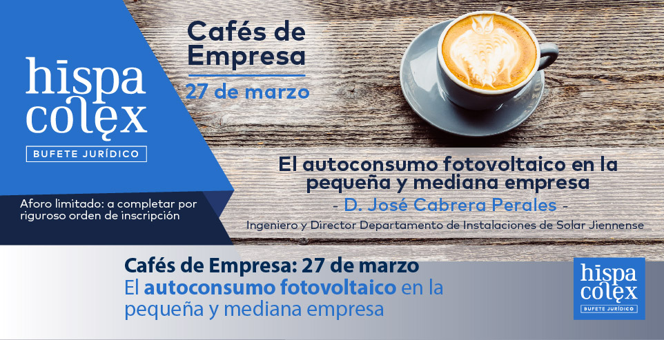 De ahí que este Café de Empresa, que ha tenido lugar este miércoles 27 de marzo, a las 16.30 horas en la sede de HispaColex en Granada (C/ Trajano, 8, 1ª planta) ha llevado por título “El autoconsumo fotovoltaico en la pequeña y mediana empresa”, configurándose de forma sencilla y práctica.