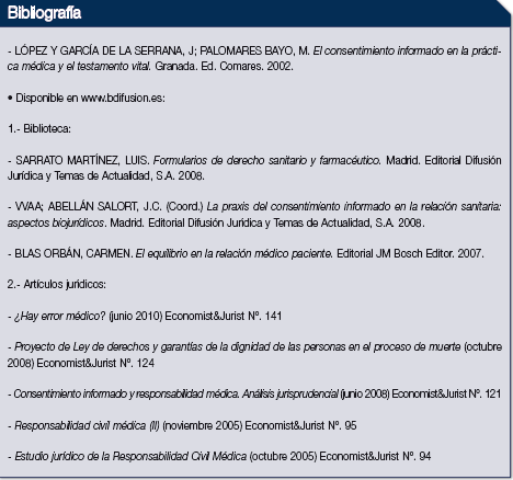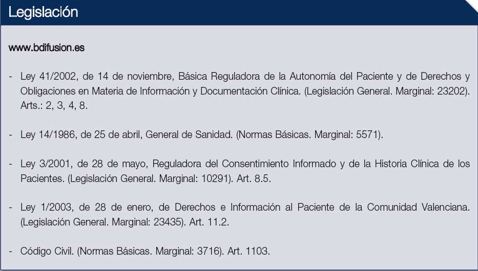Con todo lo anterior, considero que esta Ley es un magnífico instrumento a la hora de la aplicación de la doctrina ya existente con anterioridad a la misma, sobre el tema del derecho de información del paciente y el consentimiento informado; instrumento que deberemos aplicar y desarrollar en la práctica diaria para conseguir así una interpretación jurisprudencial sobre determinados aspectos que esta Ley, como muchas otras normas jurídicas, no deja suficientemente claros.
