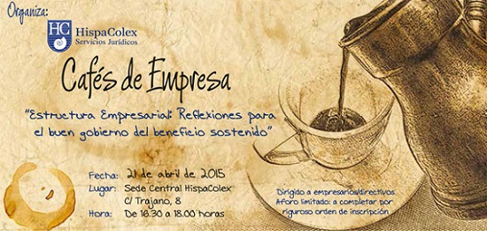 El día 21 de abril en la sede de HispaColex, celebramos la séptima edición de los “Cafés de Empresa” en el que se debatirá con directivos y empresarios sobre Estructura Empresarial.