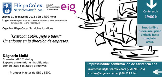 El próximo 21 de mayo a las 19:00 horas HispaColex y EIG celebran el regreso de Cristóbal Colón a Granada en el ciclo de conferencias «Hablemos de Empresa».