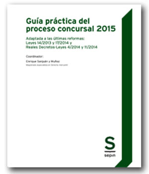 El director de HispaColex, Javier López y García de la Serrana, fue invitado a participar en la obra “Guía práctica del proceso concursal 2015” recientemente publicada por la Editorial SEPIN, al frente de cuya coordinación ha estado el Magistrado especialista en Derecho mercantil, Enrique Sanjuán y Muñoz. En la misma participan otros quince especialistas en la materia, la mayoría magistrados que, como el propio Sanjuán, son grandes conocedores de la jurisdicción mercantil donde ejercen su labor habitualmente.