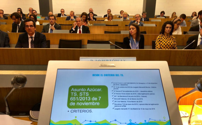 En el acto intervinieron, por parte de Hispajuris, además de Javier López y García de la Serrana, el abogado y socio de la firma Ángel E. Sánchez y Resina, coordinador del servicio de reclamaciones contra el cártel de fabricantes de camiones. Por parte de CEOE intervino José Mª Campos, responsable del Área Legal de la organización empresarial.