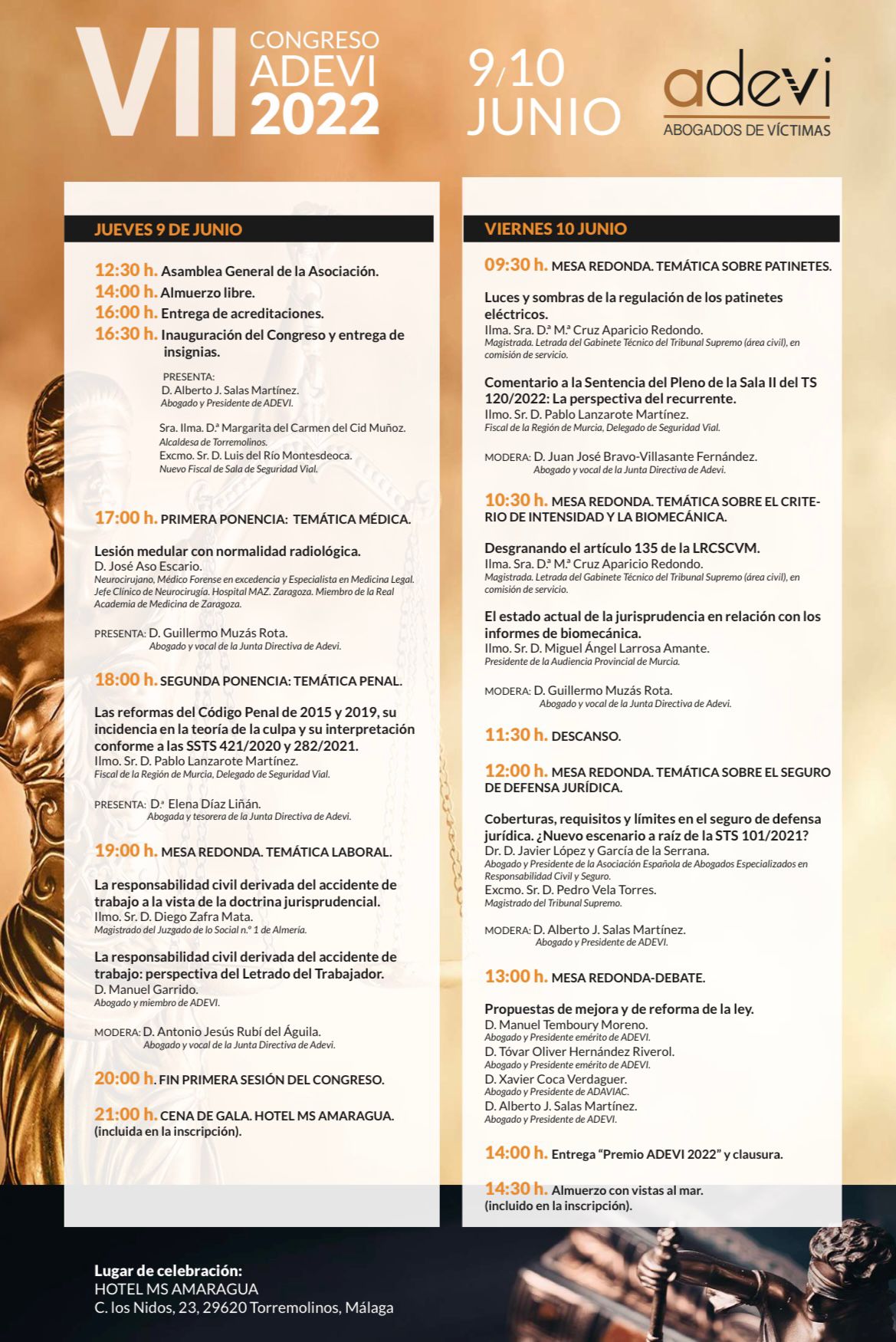 La Asociación de Abogados de Víctimas de Accidentes celebrará los días 9 y 10 de junio, en Torremolinos (Málaga), la séptima edición de su congreso anual.