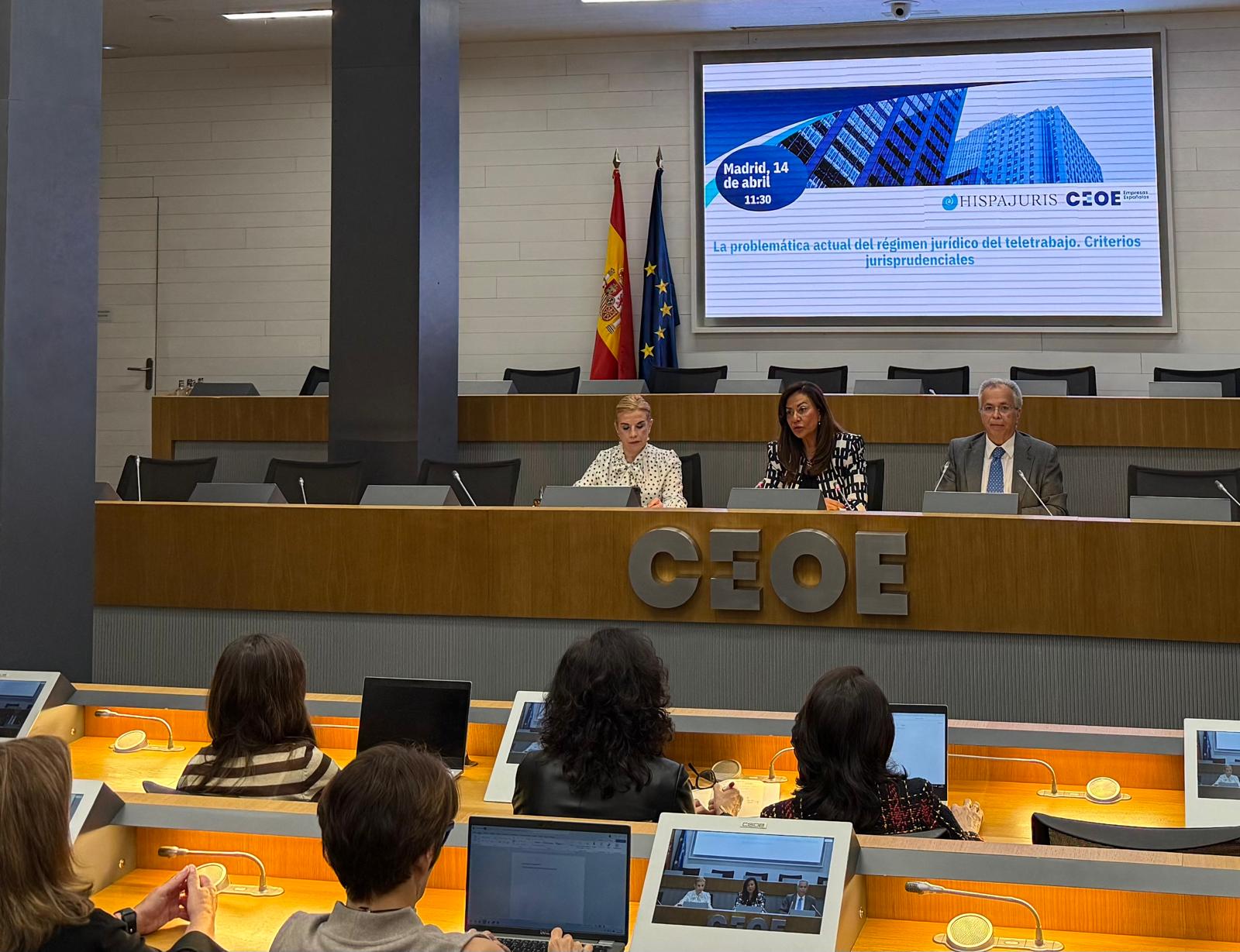 En la mañana del martes, 14 de abril de 2026, en la sede de la CEOE, se ha celebrado con gran acogida la conferencia titulada «La problemática actual del régimen jurídico del teletrabajo. Criterios jurisprudenciales». El evento, organizado por Hispajuris Abogados en colaboración con la Confederación Española de Organizaciones Empresariales, se ha centrado en el análisis de los desafíos legales que plantea esta modalidad laboral en el contexto actual.