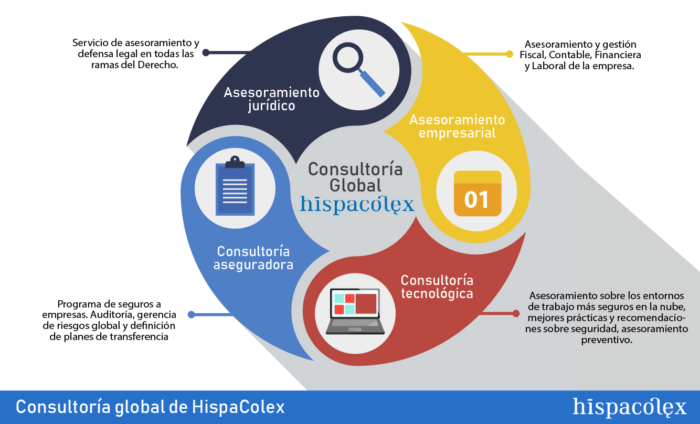 Este paso nos ha permitido evolucionar hacia una consultoría global que potencia la especialización de nuestros servicios, un factor cada vez más valorado, respondiendo desde el prisma jurídico a la transformación digital del mercado y a las nuevas necesidades de nuestros clientes. Así, nos centramos en lo que realmente genera valor añadido: los clientes de HispaColex se benefician de un asesoramiento verdaderamente integral, que abarca todas las áreas de sus empresas. Ya no solo disponen de abogados y economistas especializados en las distintas áreas del derecho y la economía empresarial, sino que también cuentan con consultores de confianza y profesionalidad que orientan su actividad mediante auditorías de riesgos, productividad e innovación tecnológica.