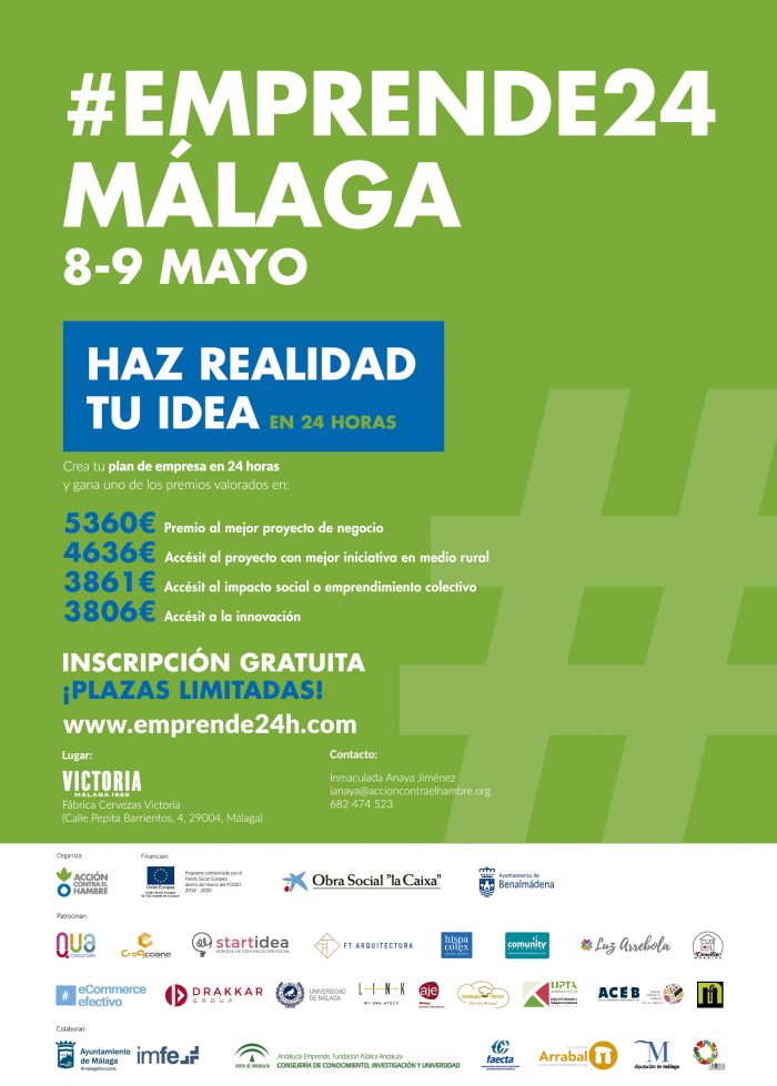 #Emprende24 Málaga se enmarca dentro del programa gratuito Vives Emprende, que Acción contra el Hambre tiene en marcha en Málaga para apoyar a personas en situación de desempleo o de inestabilidad laboral que deseen poner en marcha una idea de negocio. Vives Emprende les ofrece asesoramiento, formación y acceso a financiación (microcréditos, préstamos, crowfunding, subvenciones…) para que hagan realidad su idea emprendedora.
