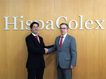 En la imagen aparece su Director General, Sergio Solares Fernández, junto al director general de HispaColex, Javier López y García de la Serrana, en una de las visitas realizadas a nuestro despacho recientemente.