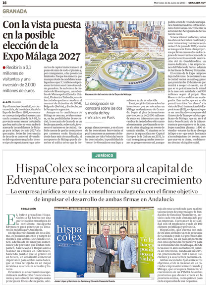 GRANADA DIGITAL: https://www.granadadigital.es/hispacolex-incorpora-capital-edventure-potenciar-crecimiento-malaga-andalucia/
