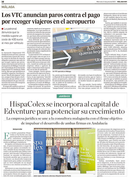 LA OPINIÓN DE MÁLAGA: https://www.laopiniondemalaga.es/economia/empresas-malaga/2023/06/20/hispacolex-incorpora-capital-edventure-potenciar-88924325.html