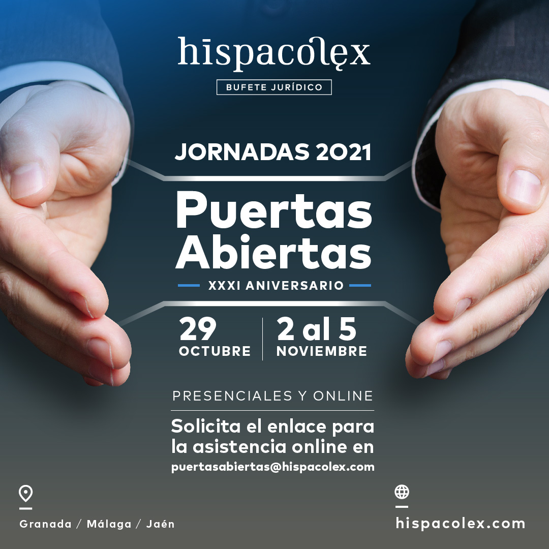 Con motivo del XXXI Aniversario de HispaColex Bufete Jurídico, el despacho celebra sus habituales Jornadas de Puertas Abiertas en las que algunos de los abogados de la firma abordarán temáticas jurídicas de actualidad y darán respuesta a las dudas que les planteen los asistentes e invitados.