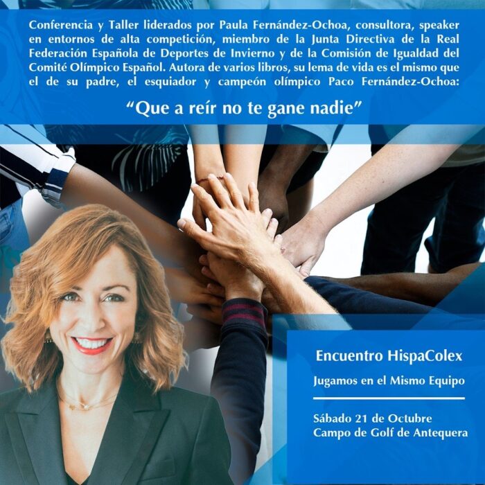 Tras sus palabras de bienvenida tuvo lugar una Conferencia y Taller liderado por Paula Fernández-Ochoa, consultora & speaker en entornos de alta competición, socia de MoreThanlaw+, fundadora de la marca VivircorRiendo y miembro tanto de la Junta Directiva de la Real Federación Española de Deportes de Invierno como de la Comisión de Igualdad del Comité Olímpico Español. Además, es TED Talk Speaker, docente en universidades, mentora, embajadora de proyectos y marcas y autora de varios libros y artículos. Hija del esquiador campeón olímpico Paco Fernández-Ochoa, oro en Sapporo ’72, de quien heredó su lema de vida: “Que a reír no te gane nadie”.