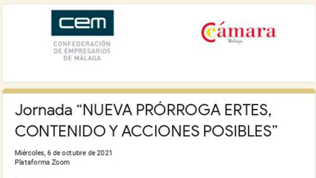 La Jornada, que bajo el título de “Nueva prórroga Ertes, contenido y acciones posibles”, ha sido organizada conjuntamente por la Confederación de Empresarios de Málaga y la Cámara de Comercio de Málaga y ha contado con la conexión constante de más de 150 empresarios malagueños preocupados por las consecuencias de esta nueva normativa.