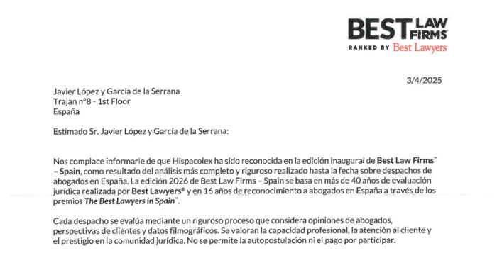 Un año más, en su edición 2025, el ranking Best Lawyers, referencia en el sector jurídico, destaca a profesionales de HispaColex entre los mejores abogados de España en su especialidad: a Javier López y García de la Serrana, director de HispaColex, en el área de Insurance Law (Derecho de Seguros) y a Ignacio Valenzuela Cano, director del Departamento de Derecho Civil-Mercantil de HispaColex, en el área de Litigation (resolución de litigios).