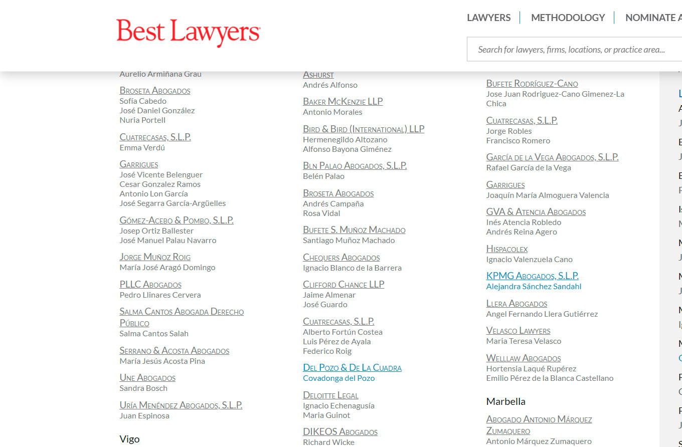 Estos reconocimientos se deciden en función de una serie de factores que incluyen el “feedback” de abogados reconocidos por Best Lawyers por su trayectoria personal y la de su bufete, el tamaño y la cobertura que presta la firma en un área determinada y la investigación sobre el alcance general de la empresa y sus áreas de especialización.