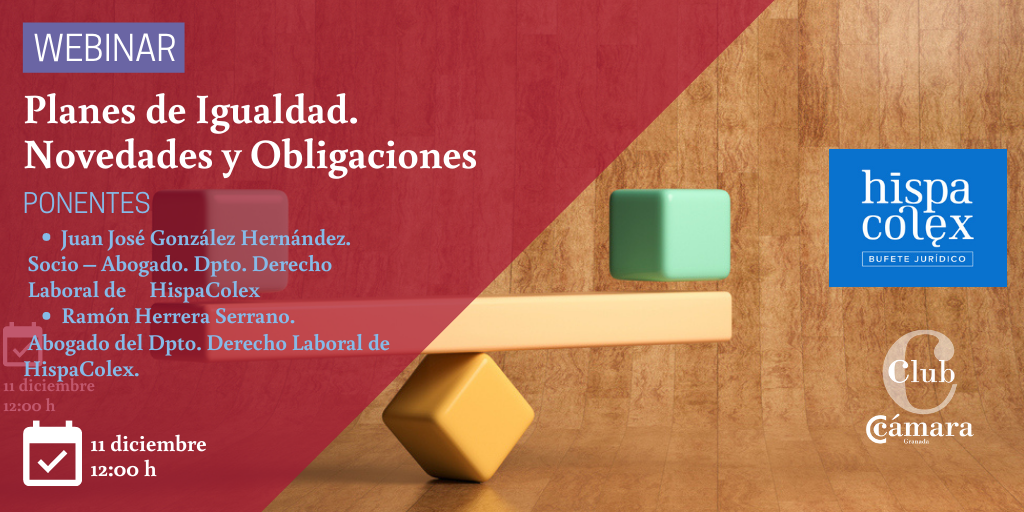 Mañana, 11 de diciembre, de 12:00 a 13:00 horas, celebramos este Webinar gratuito organizado por Club Cámara Granada e HispaColex Bufete Jurídico.