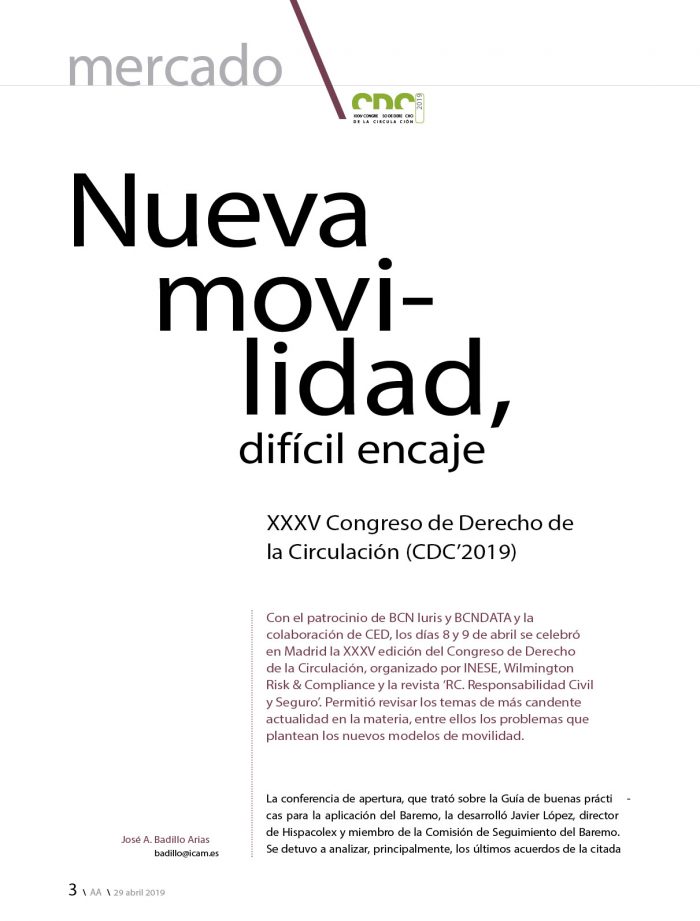 Con el patrocinio de BCN Iuris y BCNDATA y la colaboración de CED, los días 8 y 9 de abril se celebró en Madrid la XXXV edición del Congreso de Derecho de la Circulación, organizado por INESE, Wilmington Risk & Compliance y la revista ‘RC. Responsabilidad Civil y Seguro’. Permitió revisar los temas de más candente actualidad en la materia, entre ellos los problemas que plantean los nuevos modelos de movilidad.
