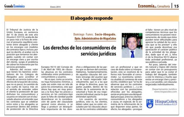 Artículo de Domingo Funes, abogado de HispaColex, en Granada Económica.