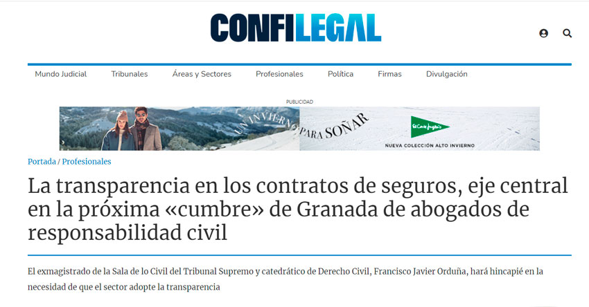 CONFILEGAL: La transparencia en los contratos de seguros, eje central en la próxima «cumbre» de Granada de abogados de responsabilidad civil