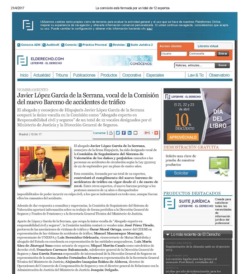 El Derecho: Nombramiento de Javier López García de la Serrana, vocal de la Comisión del nuevo Baremo de accidentes de tráfico