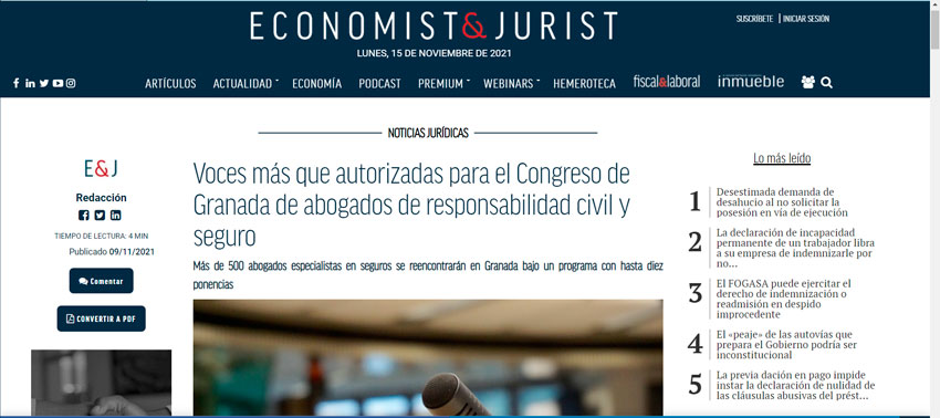 ECONOMIST&JURIST: Voces más que autorizadas para el Congreso de Granada de abogados de responsabilidad civil y seguro