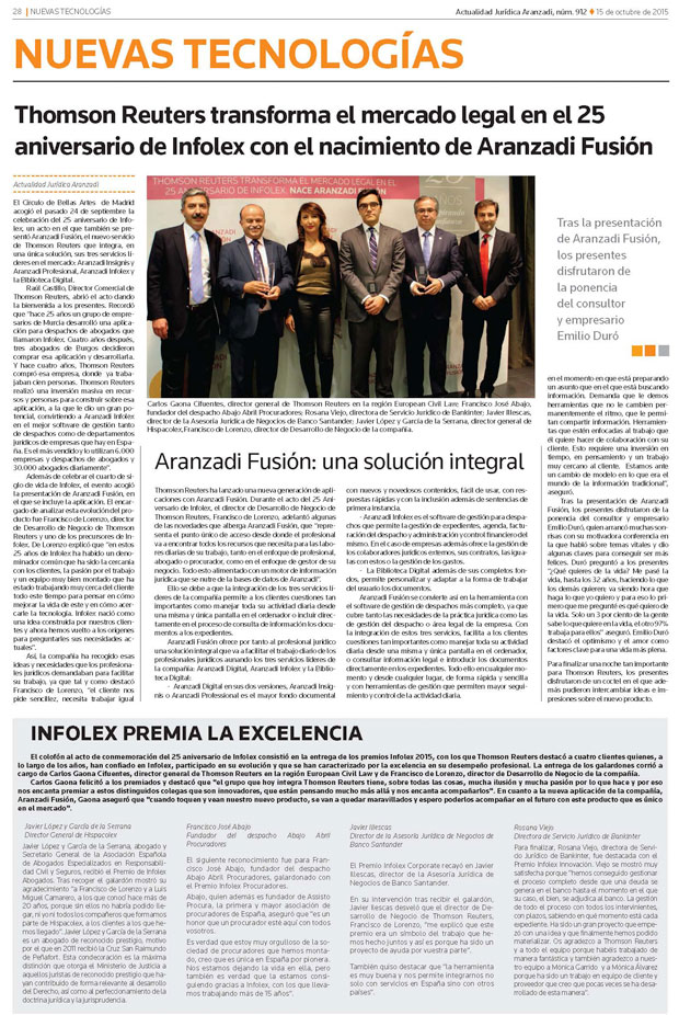 18/11/2015 El director de HispaColex recibe el Premio de Infolex Abogados en nombre del despacho durante el 25 aniversario de Infolex al mismo tiempo que se celebra el nacimiento de Aranzadi Fusión. Fuente: El director de HispaColex recibe el Premio de Infolex Abogados en nombre del despacho durante el 25 aniversario de Infolex al mismo tiempo que se celebra el nacimiento de Aranzadi Fusión.PDF  Hispacolex < AnteriorSiguiente > Deja una respuesta Cancelar la respuestaTu dirección de correo electrónico no será publicada. Los campos obligatorios están marcados con *Comentario * Nombre * Correo electrónico * Web Guarda mi nombre, correo electrónico y web en este navegador para la próxima vez que comente. Δ