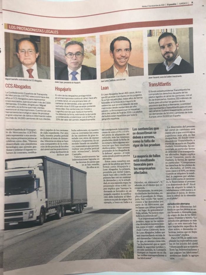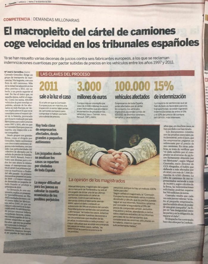 El periódico Expansión detalla, en un amplio reportaje, la historia de este complot de precios en cifras así como las circunstancias que llevaron a 4 grandes firmas jurídicas españolas -una de ellas, HISPAJURIS– a defender los intereses de miles de empresarios que se vieron perjudicados.