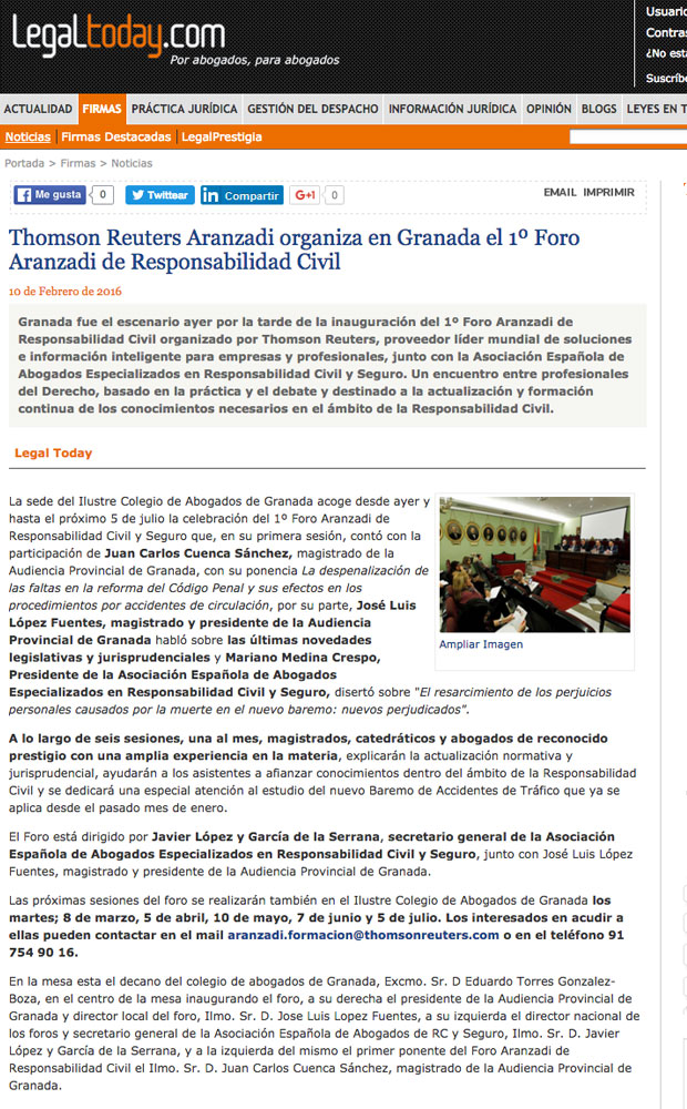 1º Foro Aranzadi de Responsabilidad Civil en Granada