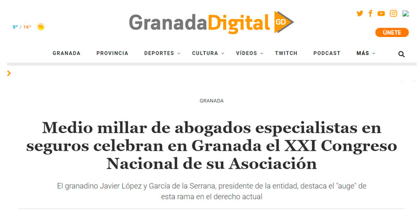 GRANADA DIGITAL: Medio millar de abogados especialistas en seguros celebran en Granada el XXI Congreso Nacional de su Asociación