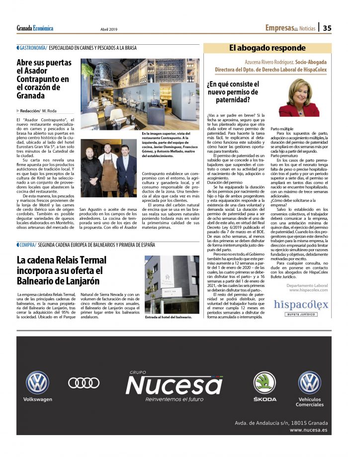 Nuestra compañera Azucena Rivero, Socio-Abogada y Directora del Departamento de Derecho Laboral de HispaColex Bufete Jurídico resuelve todas las dudas sobre el nuevo permiso de paternidad en la sección El Abogado Responde del periódico Granada Económica.
