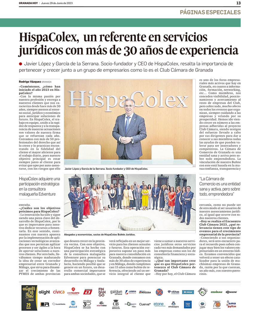 29/06/2023 GRANADA HOY: Entrevista a HispaColex, patronos del Encuentro Club Cámara 2023  Abogados en Granada, Málaga y Jaén < AnteriorSiguiente > Deja una respuesta Cancelar la respuestaTu dirección de correo electrónico no será publicada. Los campos obligatorios están marcados con *Comentario * Nombre * Correo electrónico * Web Guarda mi nombre, correo electrónico y web en este navegador para la próxima vez que comente. Δ