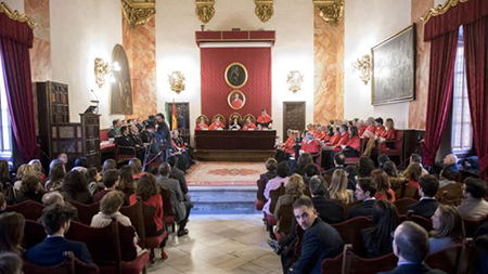 En este acto, que se celebró en el Paraninfo de la Facultad de Derecho con motivo del patrón, la rectora de la UGR, Pilar Aranda, manifestó su objetivo de reducir la ratio de estudiantes por curso, así como la necesidad de elaborar un Plan Director de Infraestructuras para la revisión de los edificios emblemáticos de la Universidad.