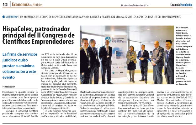 HispaColex, patrocinador principal del II Congreso de Científicos Emprendedores (Granada Económica)