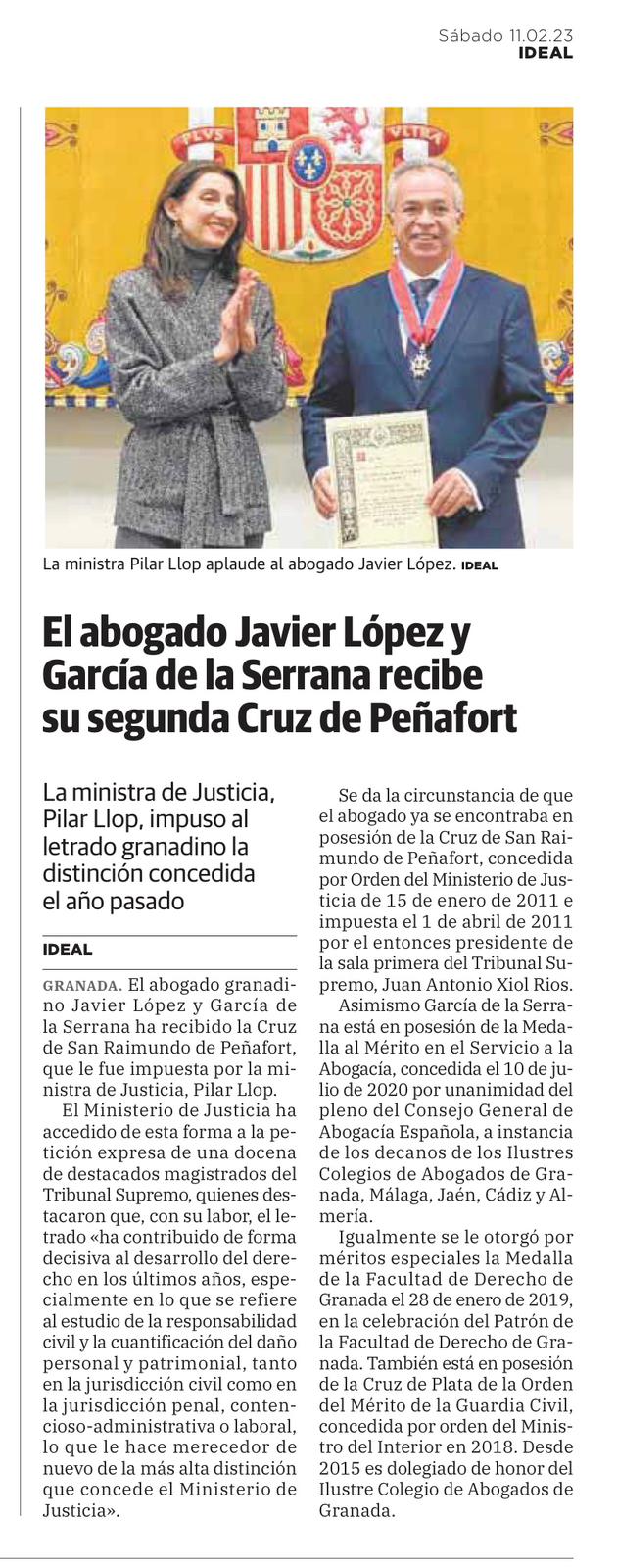 11/02/2023 IDEAL: El abogado Javier López y García de la Serrana recibe su segunda Cruz de Peñafort  Abogados en Granada, Málaga y Jaén < AnteriorSiguiente > Deja una respuesta Cancelar la respuestaTu dirección de correo electrónico no será publicada. Los campos obligatorios están marcados con *Comentario * Nombre * Correo electrónico * Web Guarda mi nombre, correo electrónico y web en este navegador para la próxima vez que comente. Δ
