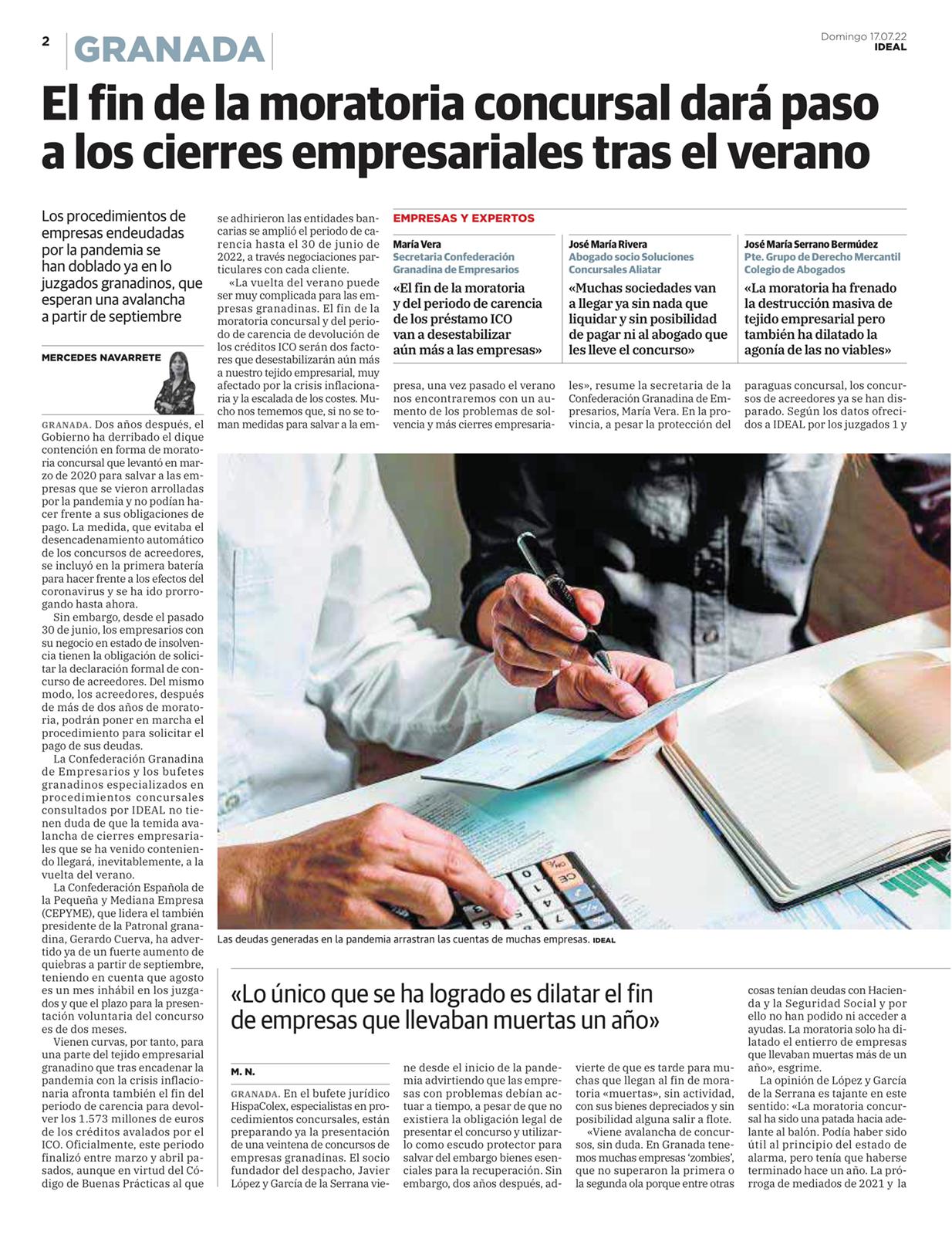 17/07/2022 IDEAL: El fin de la moratoria concursal dará paso a los cierres empresariales tras el verano  Abogados en Granada, Málaga y Jaén < AnteriorSiguiente > Deja una respuesta Cancelar la respuestaTu dirección de correo electrónico no será publicada. Los campos obligatorios están marcados con *Comentario * Nombre * Correo electrónico * Web Guarda mi nombre, correo electrónico y web en este navegador para la próxima vez que comente. Δ