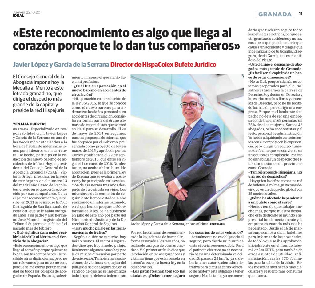25/10/2020 IDEAL: Entrevista al director de HispaColex, recién otorgada la Medalla al Mérito en el Servicio de la Abogacía  Abogados en Granada, Málaga y Jaén < AnteriorSiguiente > Los comentarios están cerrados.