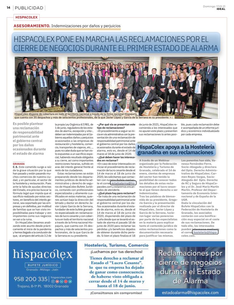 17/01/2021 IDEAL: HispaColex pone en marcha las reclamaciones por el cierre de negocios durante el primer Estado de Alarma  Abogados en Granada, Málaga y Jaén < AnteriorSiguiente > Los comentarios están cerrados.