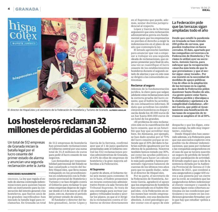 18/06/2021 IDEAL: Hosteleros granadinos reclaman 32 millones al Gobierno por las pérdidas del estado de alarma  Abogados en Granada, Málaga y Jaén < AnteriorSiguiente > Los comentarios están cerrados.