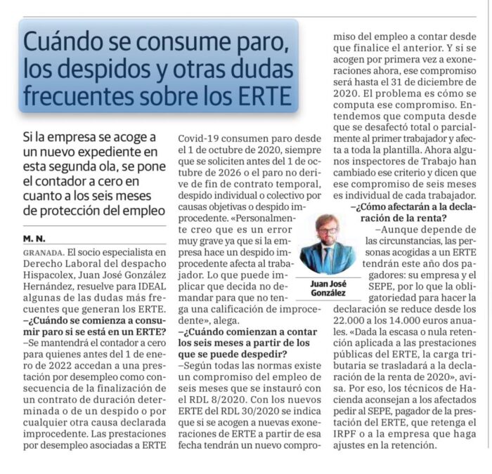 Ideal: Juan José González, Socio-Abogado de HispaColex, responde a las dudas sobre los ertes.