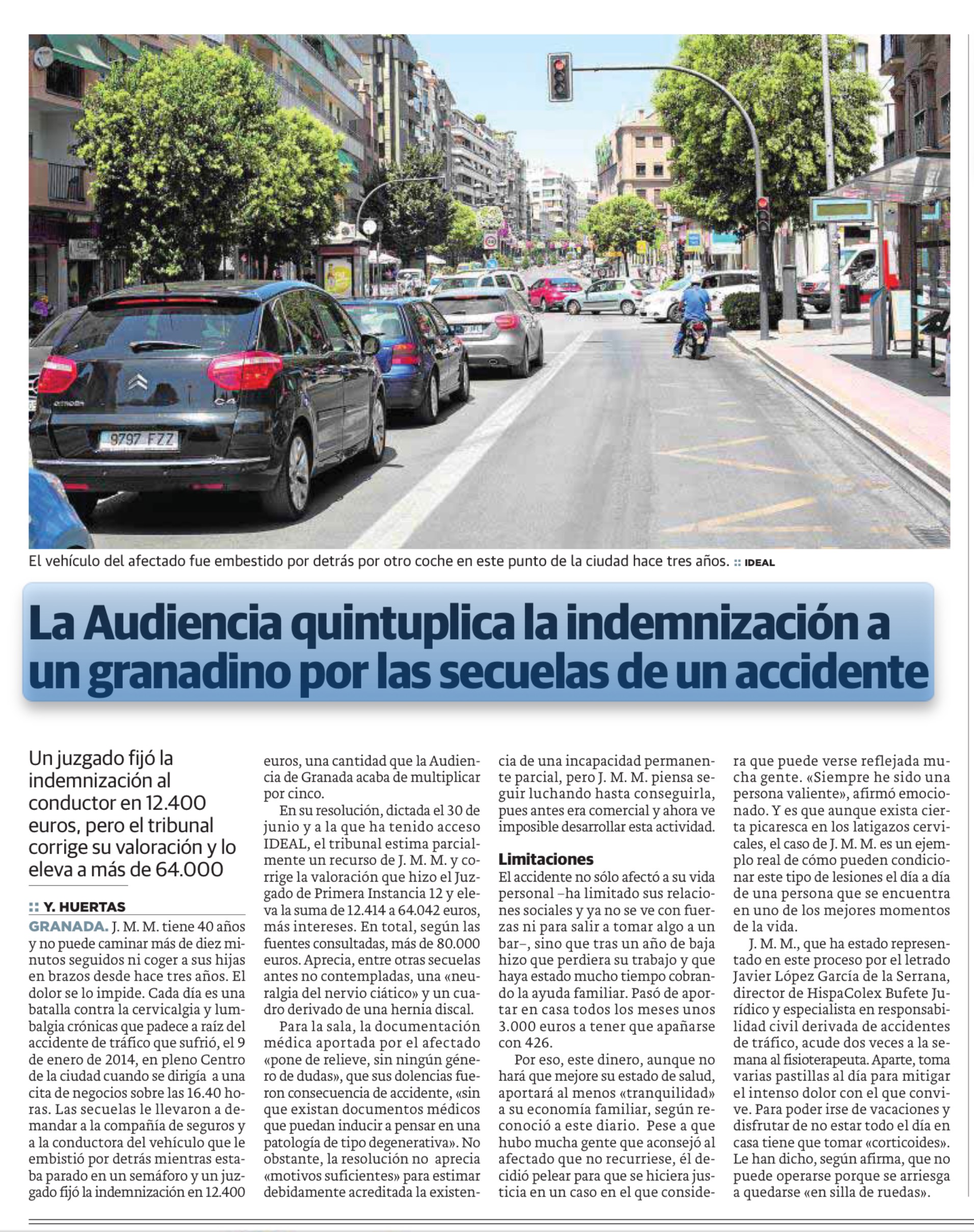 IDEAL: La Audiencia quintuplica la indemnización a un granadino por las secuelas de un accidente