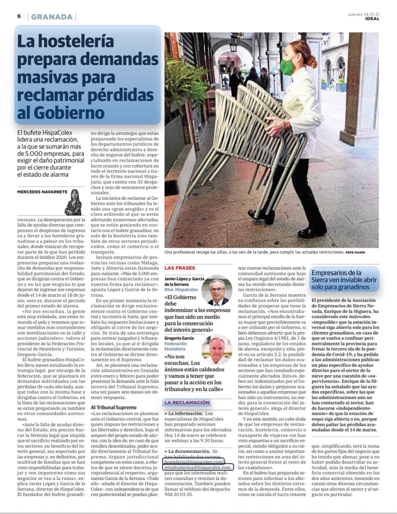 14/01/2021 IDEAL: La Hostelería prepara demandas masivas para reclamar pérdidas al Gobierno  Abogados en Granada, Málaga y Jaén < AnteriorSiguiente > Los comentarios están cerrados.