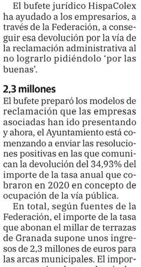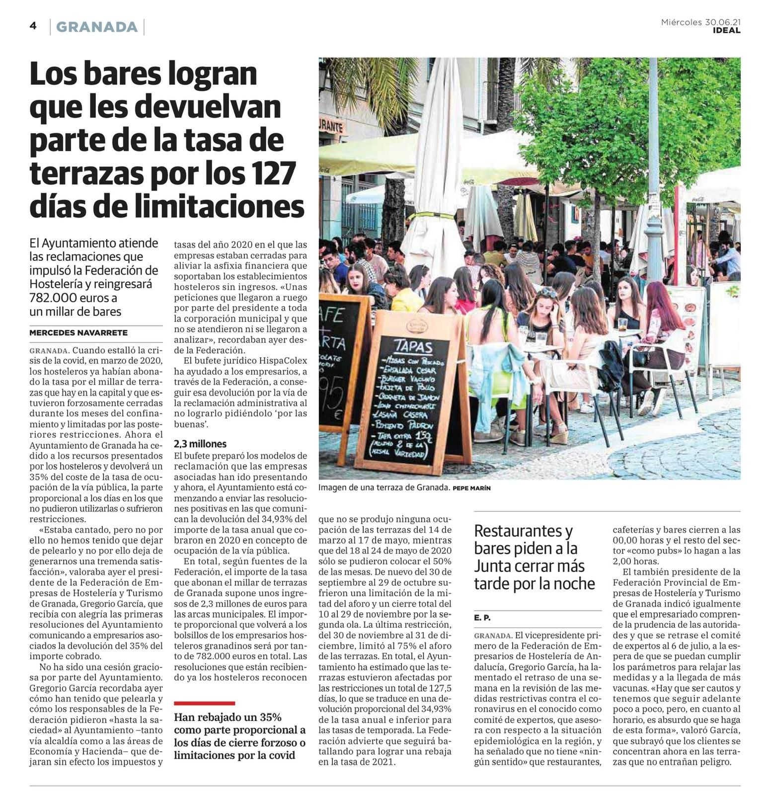 30/06/2021 IDEAL: Los bares logran que les devuelvan parte de la tasa de terrazas por los 127 días de limitaciones Extracto de la noticia del diario IDEAL  Abogados en Granada, Málaga y Jaén < AnteriorSiguiente > Los comentarios están cerrados.