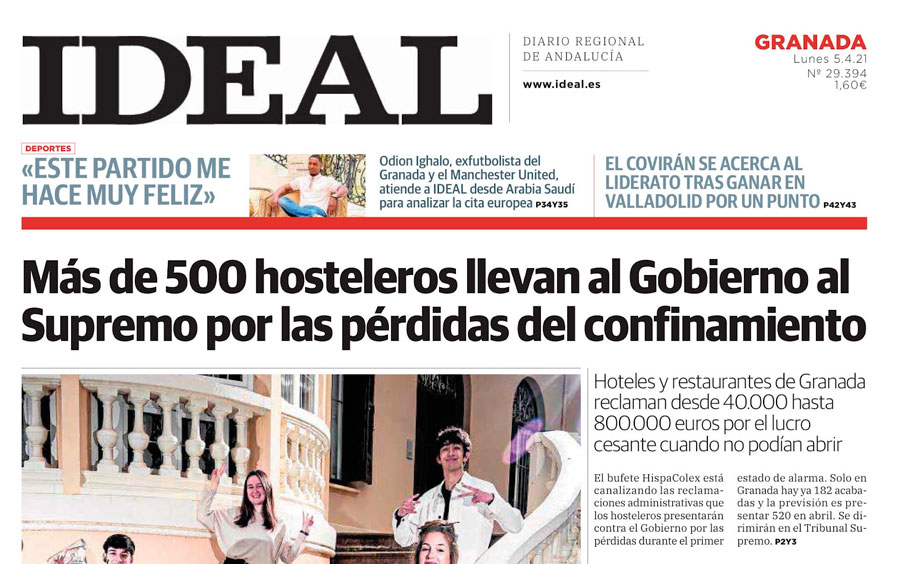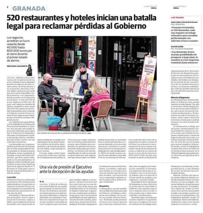 05/04/2021 IDEAL: Más de 500 hosteleros llevan al Gobierno al Supremo por las pérdidas del confinamiento  Abogados en Granada, Málaga y Jaén < AnteriorSiguiente > Los comentarios están cerrados.
