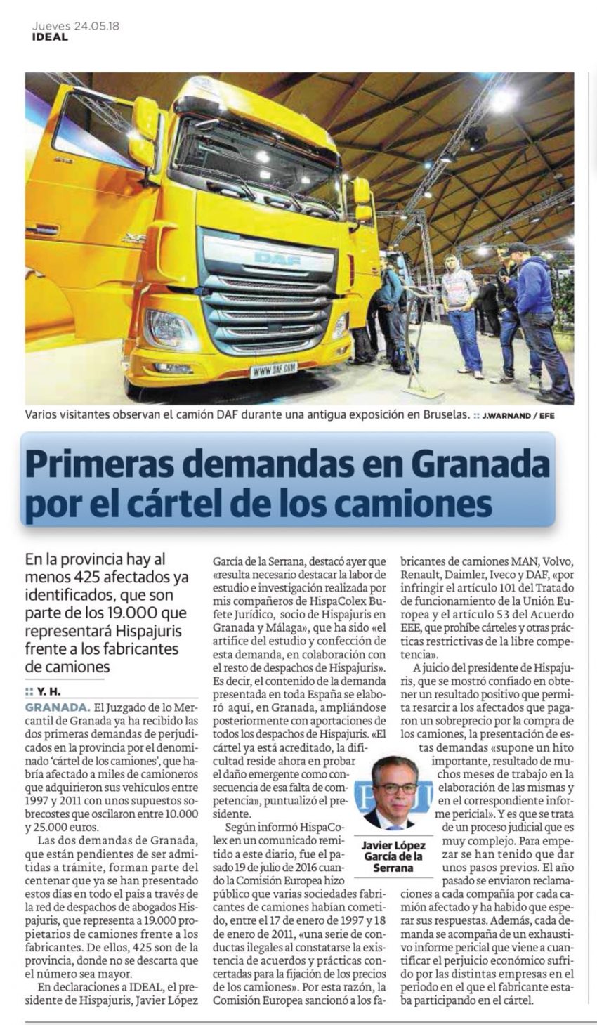 IDEAL: Primeras demandas en Granada por el cartel de camiones