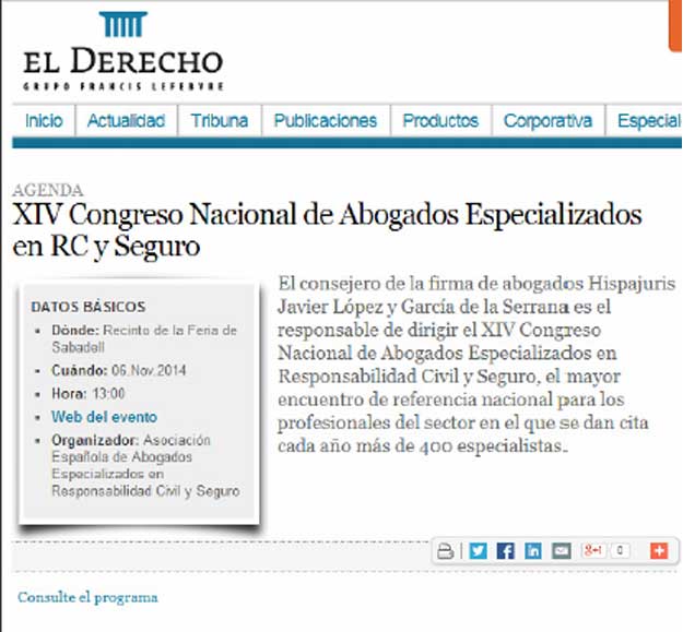 Jarvier López y García de la Serrana dirige el XIV Congreso Nacional de Abogados Especializados en Responsabilidad Civil y Seguro
