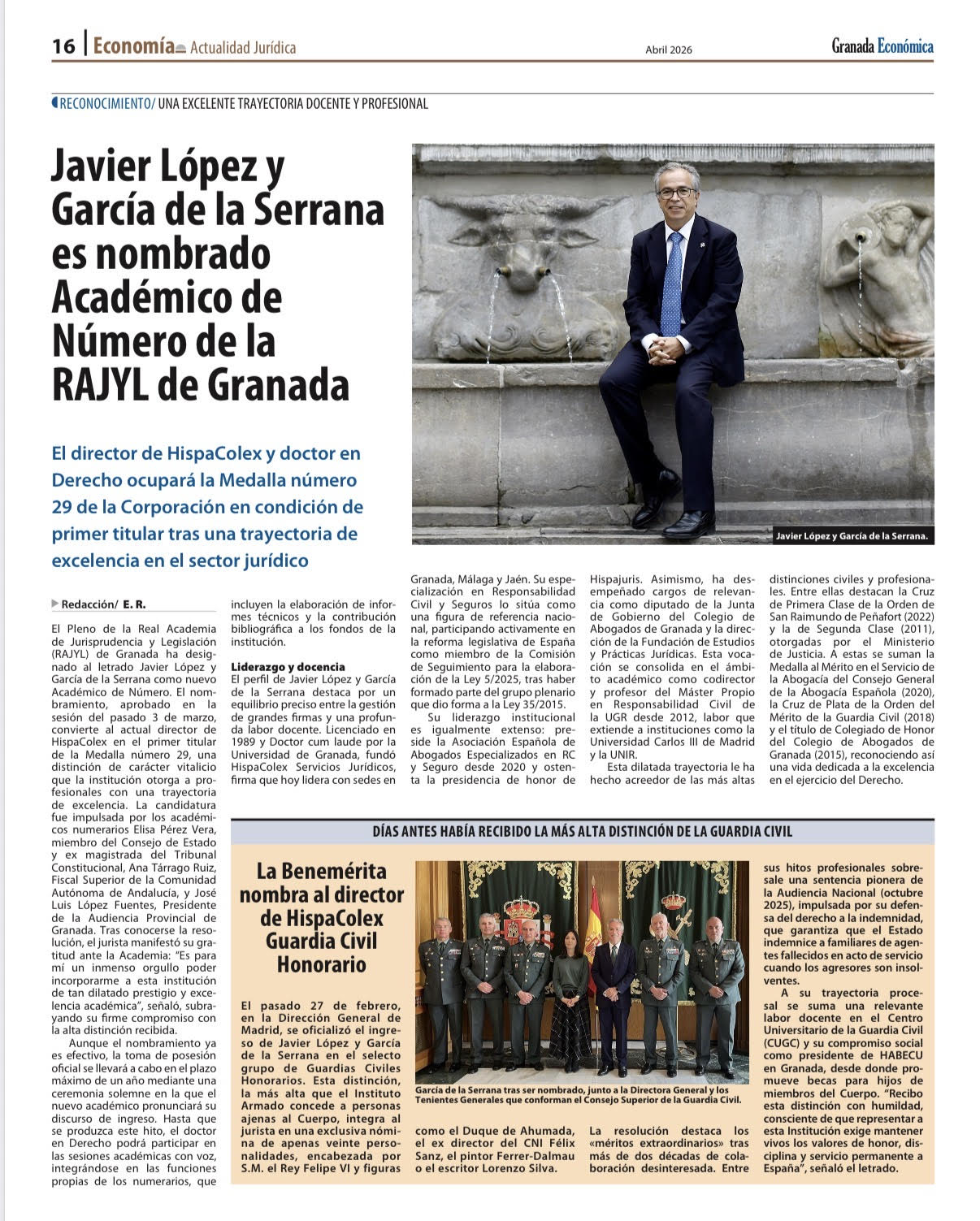 Javier López y García de la Serrana es nombrado Académico de Número de la RAJYL de Granada