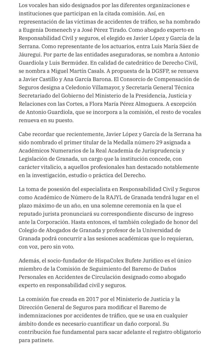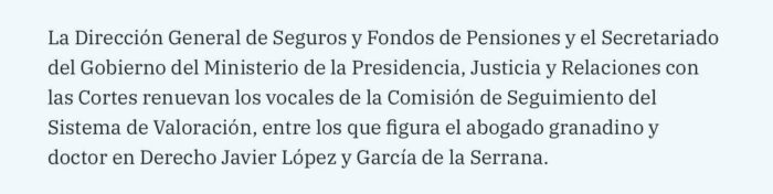 Javier López y García de la Serrana, reelegido como vocal de la comisión de seguimiento del sistema de valoración de seguros