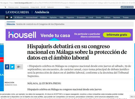25/09/2018 LA VANGUARDIA: Hispajuris debatirá en su congreso nacional en Málaga sobre la protección de datos en el ámbito laboral Acceso al contenido de la publicación  Abogados en Granada, Málaga y Jaén < AnteriorSiguiente > Deja una respuesta Cancelar la respuestaTu dirección de correo electrónico no será publicada. Los campos obligatorios están marcados con *Comentario * Nombre * Correo electrónico * Web Guarda mi nombre, correo electrónico y web en este navegador para la próxima vez que comente. Δ