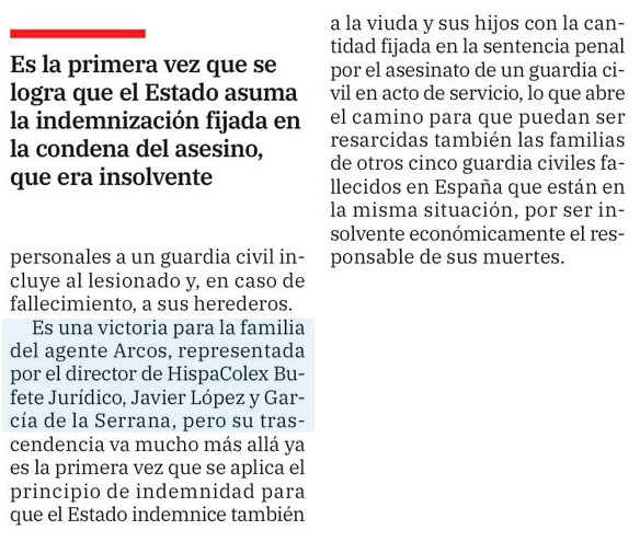 La viuda del agente Arcos gana la batalla a Interior y será indemnizado