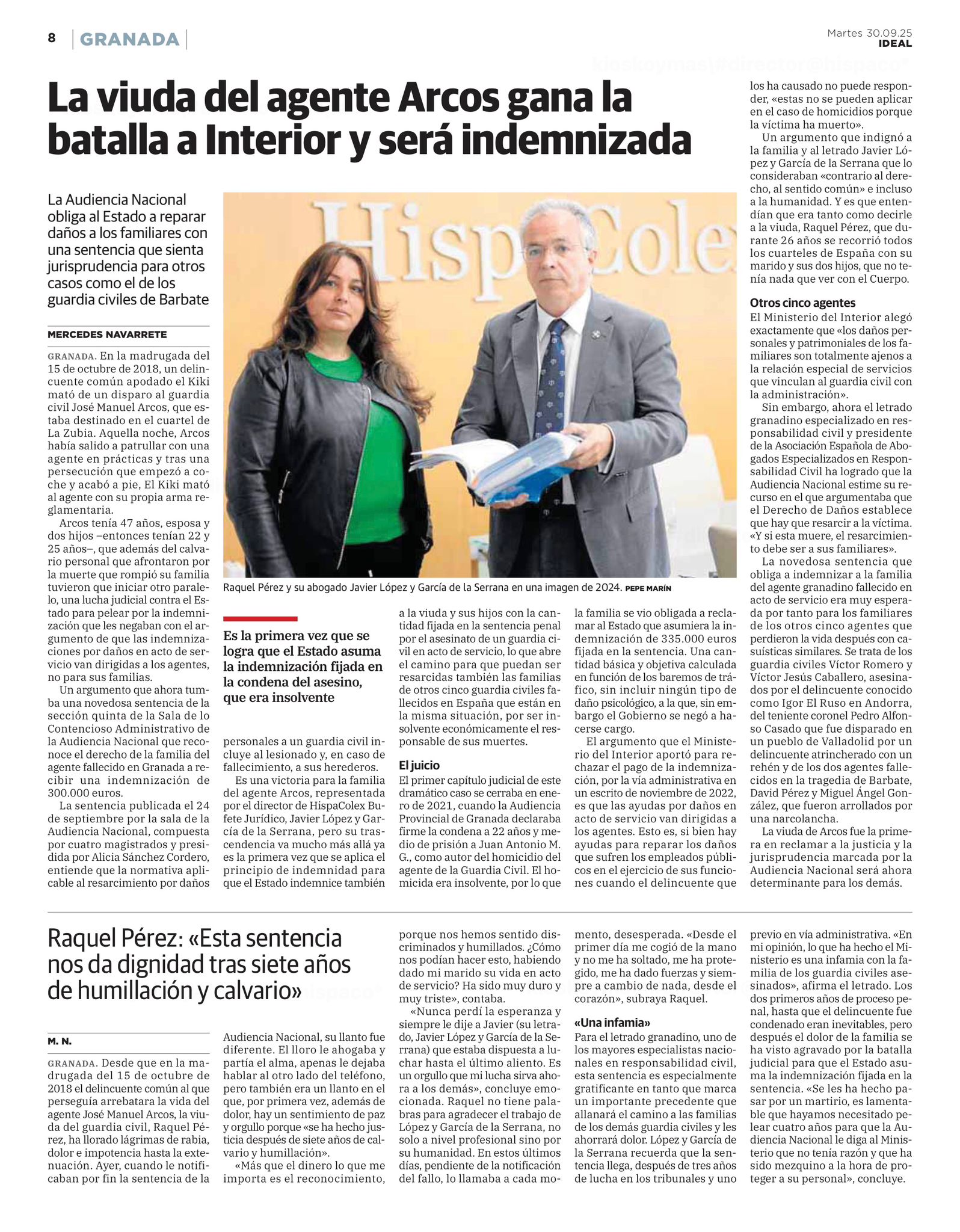 La viuda del agente Arcos gana la batalla a Interior y será indemnizado
