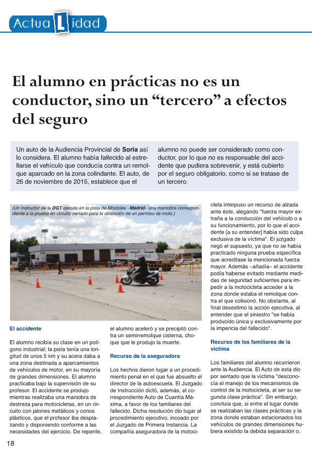 Los abogados de HispaColex elaboran un estudio titulado: «El alumno en prácticas no es un conductor, sino un tercero a efectos del seguro»